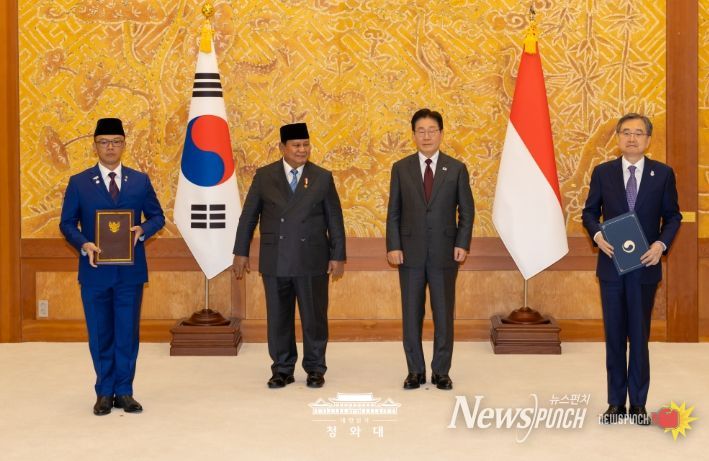 뉴스펀치 김용희 기자 | 이재명 대통령은 1일 국빈 방한 중인 프라보워 수비안토 인도네시아 대통령과 정상회담을 갖고, '한-인도네시아 특별 포괄적 전략 동반자 관계 수립에 관한 공동성명'을 채택했다.