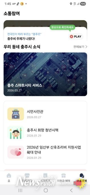 뉴스펀치 이현승 기자 | 충주시는 시민들이 일상에서 보다 편리하게 도시 정보를 이용할 수 있도록 ‘충주사랑상품권’ 앱 내 소통참여 서비스를 통해 스마트시티 통합플랫폼 모바일 홈페이지를 연계했다고 2일 밝혔다.