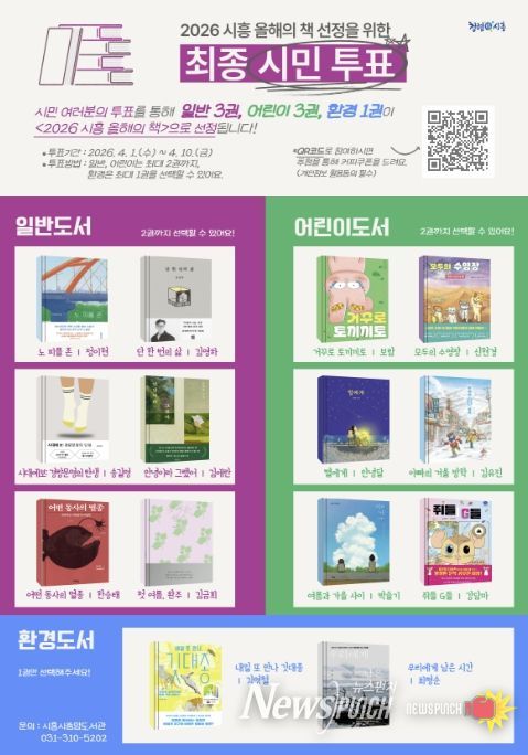 이번 시민 투표는 일반 6권, 어린이 6권, 환경 2권 등 총 14권을 대상으로 진행되며, 투표 결과를 반영해 최종 7권(일반 3권, 어린이 3권, 환경 1권)이 ‘2026 시흥 올해의 책’으로 선정된다.