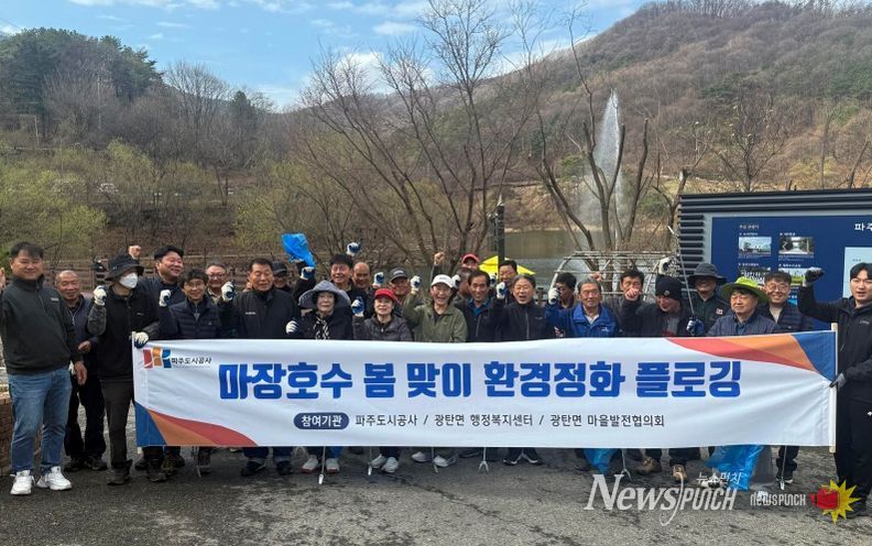 뉴스펀치 박상훈 기자 | 파주도시공사는 지난 31일 파주시 광탄면 행정복지센터 및 마을발전협의회와 함께 마장호수 봄맞이 환경정화 플로깅에 나섰다.