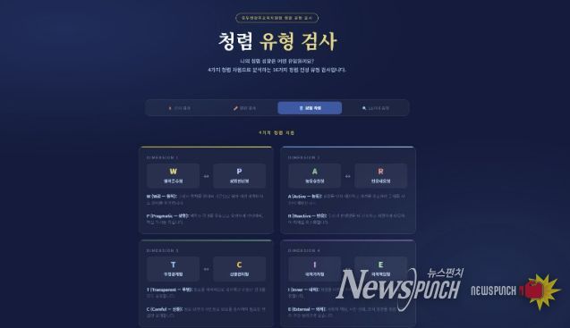 이번 검사는 전 직원을 대상으로 진행됐으며, 자체 제작한 4개 차원, 16개 유형 조합의 검사 도구가 활용됐다. 단순히 ‘청렴한가’를 묻는 것이 아니라, 판단 기준(원칙 vs 상황), 실천 방식(능동 vs 반응), 정보 관리(투명 vs 신중), 동기 원천(내적 vs 외적) 등 4개 영역을 조합하여 개인의 청렴 성향을 분석하는 방식이다.