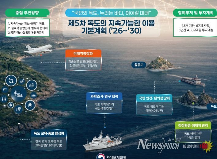 뉴스펀치 박세훈 기자 | 경상북도는 정부가 발표한 ‘제5차 독도의 지속가능한 이용을 위한 기본계획’과 2026년 시행계획에 발맞춰 독도의 실질적 관리주체로서 현장중심의 정책을 본격 추진한다.