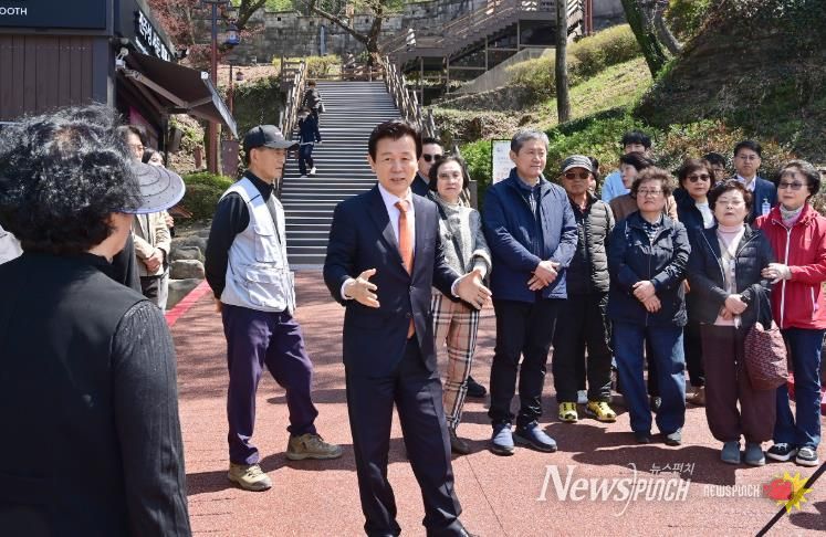 진주성 서문 매표소 부근의 진입로는 그동안 계단 단차가 높고 경사가 급해 노약자와 어린이 등 보행 약자가 이용하기에 불편하다는 지적이 제기돼 왔다.