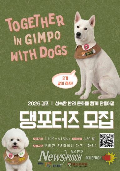 뉴스펀치 박상훈 기자 | 김포시는 올바르고 책임 있는 반려문화 확산을 이끌 ‘김포 댕포터즈’를 모집한다고 밝혔다.