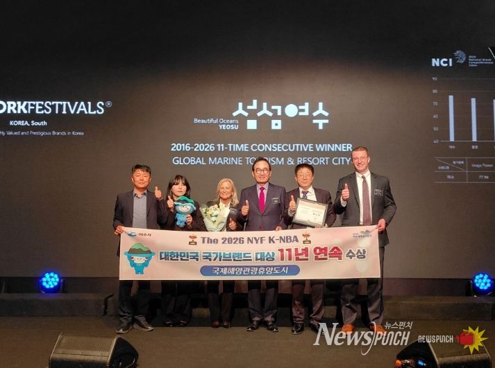 뉴스펀치 김용희 기자 | 여수시는 2일 오전 서울 롯데호텔에서 열린 ‘2026 대한민국 국가브랜드 대상’에서 11년 연속 국제해양관광휴양도시 부문 대상을 수상했다고 밝혔다.