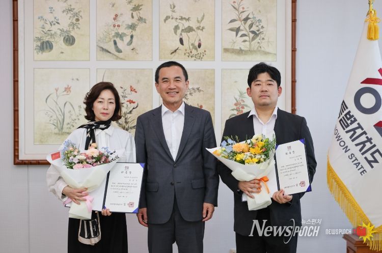 뉴스펀치 조평훈 기자 | 강원특별자치도는 4월 2일 도청 통상상담실에서 강원특별자치도립예술단(국악관현악단·무용단) 예술감독 위촉식을 열고, 김창환 예술감독 겸 상임지휘자와 김진미 예술감독 겸 상임안무자를 재위촉했다.