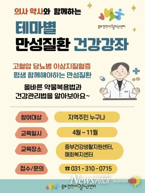 중부건강생활지원센터는 이번 강좌를 통해 지역주민의 만성질환 예방 및 관리 역량을 높이고, 향후 고혈압·당뇨병 표준화 교육과 연계해 지속적인 건강관리 참여를 유도할 계획이다.