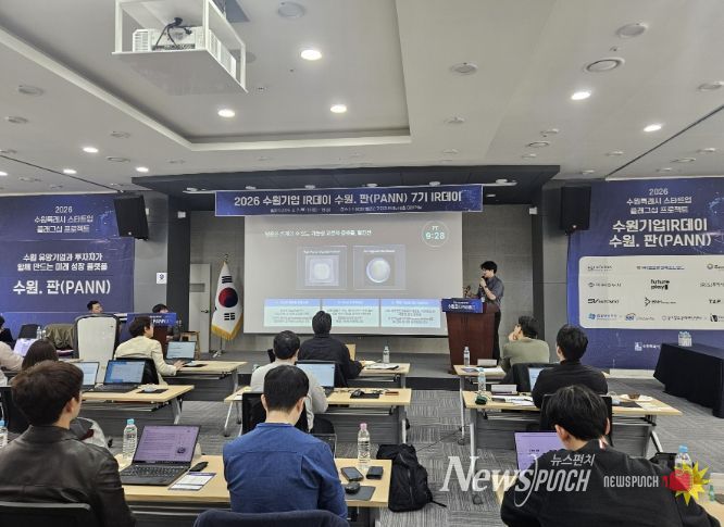 뉴스펀치 박상훈 기자 | 수원특례시가 2일 수원벤처밸리2 기업지원센터 대회의실에서 2026 수원기업 아이알(IR)데이 수원.판(PANN) 7기를 개최했다.