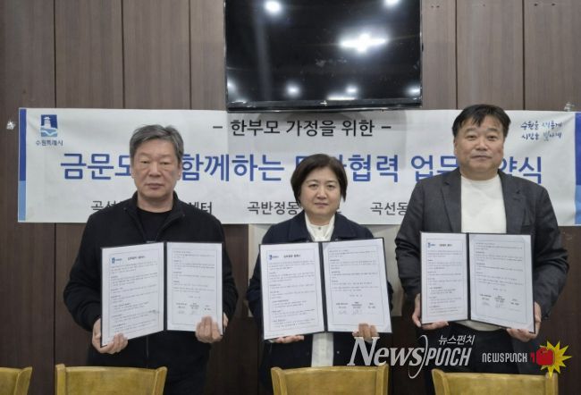 이날 협약식에는 김미현 곡선동장, 임영환 협의회장, 김태형 금문도 대표가 참여했으며, 올 한 해 총 60여 한부모가족에게 짜장면을 제공하기로 뜻을 모았다.