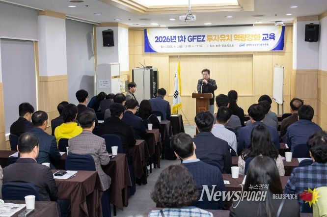 뉴스펀치 최영남 기자 | 광양만권경제자유구역청은 4월 3일 화순 금호리조트에서 직원 100여 명이 참석한 가운데 ‘2026년 제1차 투자유치 역량강화 교육’을 실시했다고 밝혔다.