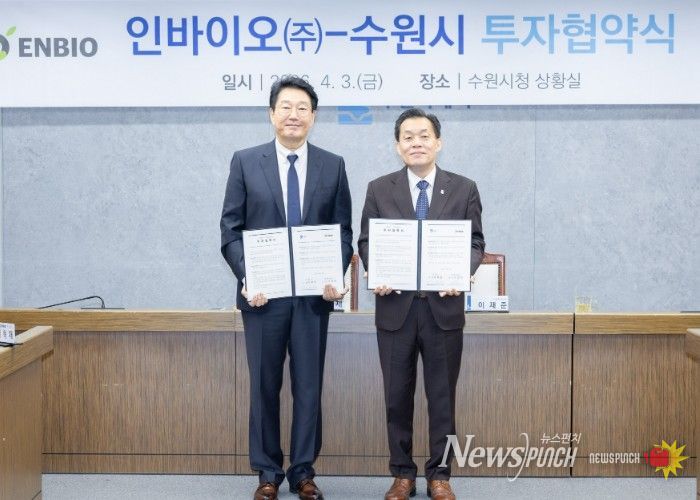 뉴스펀치 박상훈 기자 | 수원특례시가 친환경 작물보호제 제조 기업인 인바이오㈜와 민선 8기 26호 투자협약을 체결했다. 인바이오㈜ 본사와 업무시설을 수원으로 이전한다.