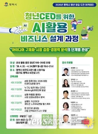 참가 대상은 평택시 관내에서 창업에 관심이 있는 만 19세부터 39세까지의 청년이며, 신청 기간은 4월 2일부터 17일까지 안내 이미지의 정보무늬(QR코드)를 통해 접수할 수 있다. 이번 교육 강좌에 대한 자세한 문의는 평택시청 청년정책과(031-8024-3571)로 하면 된다.