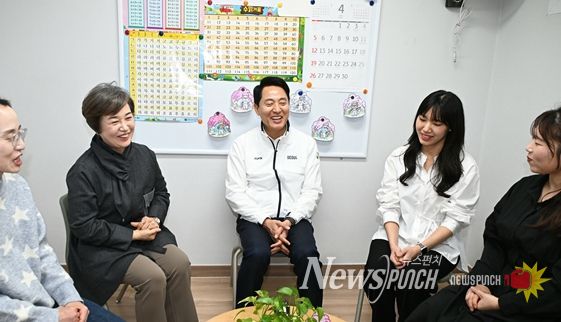 뉴스펀치 박상훈 기자 | 오세훈 서울시장은 4일 13시 구립석관동 꿈나무키우미돌봄센터(성북구 한천로 79길 14-14)를 찾아 주말돌봄 현장을 확인하고, 지역아동센터 종사자와 센터 이용 어린이들을 만났다.