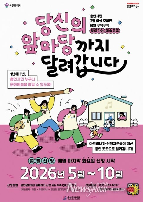 뉴스펀치 박상훈 기자 | 용인문화재단은 시민이 원하는 시간과 장소로 직접 찾아가는 2026 찾아가는 예술교육 '당신의 앞마당까지 달려갑니다'의 참여자를 오는 4월 7일부터 모집한다.