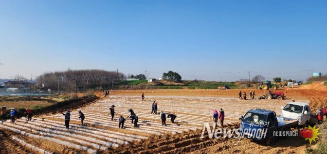 뉴스펀치 최영남 기자 | 정읍시가 지난 2일 감곡면에서 국내 육성 고구마 신품종인 ‘호풍미’의 올해 첫 묘 정식을 진행하며, 지역 고구마 산업의 경쟁력 강화와 농가 소득 증대에 나섰다.