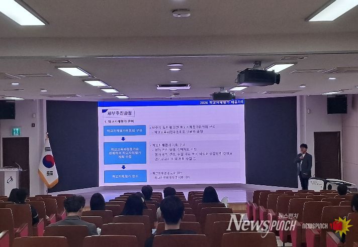 뉴스펀치 이현승 기자 | 충청남도태안교육지원청은 지난 2일 태안인공지능교육체험센터 어울림홀에서 관내 초·중·고등학교 학교자체평가 업무담당자를 대상으로 ‘2026학년도 학교자체평가 배움자리’를 운영했다.