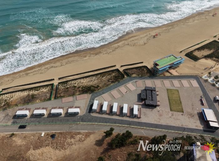 ‘포항시 근로자 다목적 야영장’은 북구 흥해읍 칠포해수욕장 인근 7,045㎡ 부지에 조성된 근로자 복합 휴식 공간으로, 카라반 9동과 야영사이트 18면을 갖춘 숙박시설과 함께 샤워장, 화장실, 취사장, 세족장 등 편의시설을 갖추고 있다.
