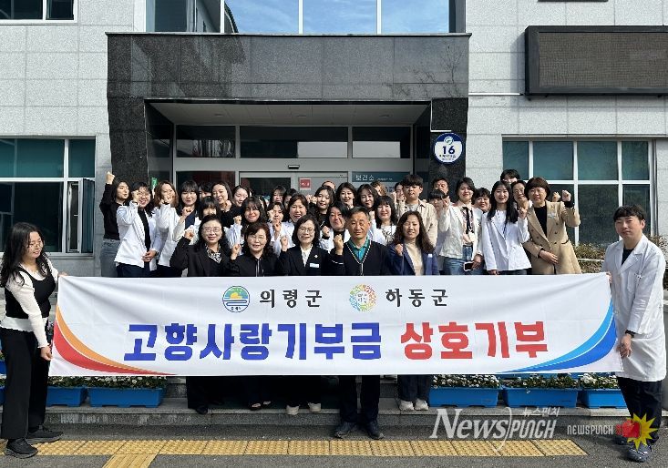 뉴스펀치 박세훈 기자 | 의령군은 3일 고향사랑기부제 활성화를 위해 하동군보건소와 상호 기부를 진행하고, 지역 간 상생 협력을 강화했다고 밝혔다.