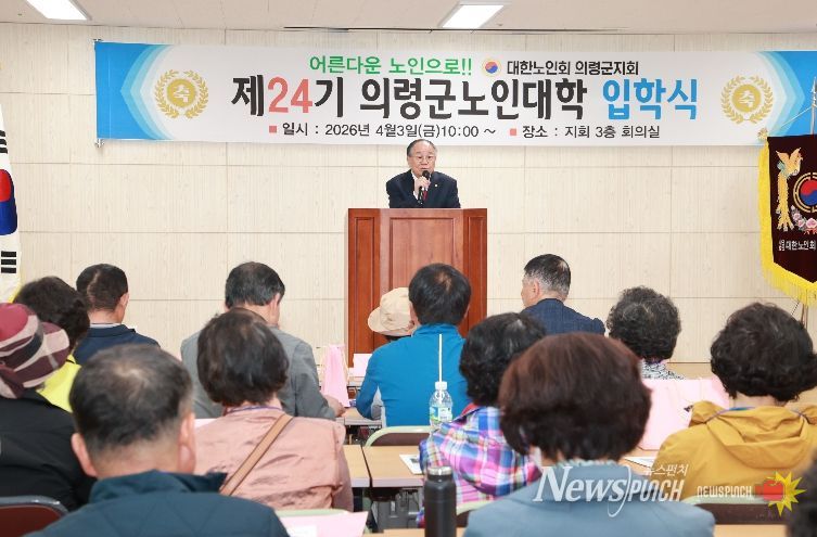 뉴스펀치 박세훈 기자 | 대한노인회 의령군지회(지회장 장혁두) 부설 제24기 의령군노인대학(학장 하만용) 입학식이 3일 의령노인복지관 3층에서 오태완 군수와 김규찬 의령군의회의장을 비롯한 기관단체장과 60명의 신입생이 참석한 가운데 거행됐다.