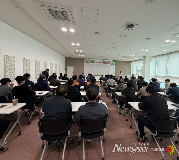 뉴스펀치 박상훈 기자 | 안성시 건축과 지역건축안전센터는 4월 3일 안성맞춤 아트홀 대회의실에서 관내 건축공사 현장 관계자를 대상으로 ‘2026년 상반기 건축공사장 안전사고 예방 교육’을 실시했다.