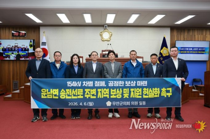 뉴스펀치 최영남 기자 | 무안군의회는 6일, 운남면 일대에서 추진 중인 송전선로 및 변전소 건설 사업과 관련하여 주민들의 실제 피해를 반영한 현실적인 보상 대책 마련을 촉구하는 성명서를 발표했다.