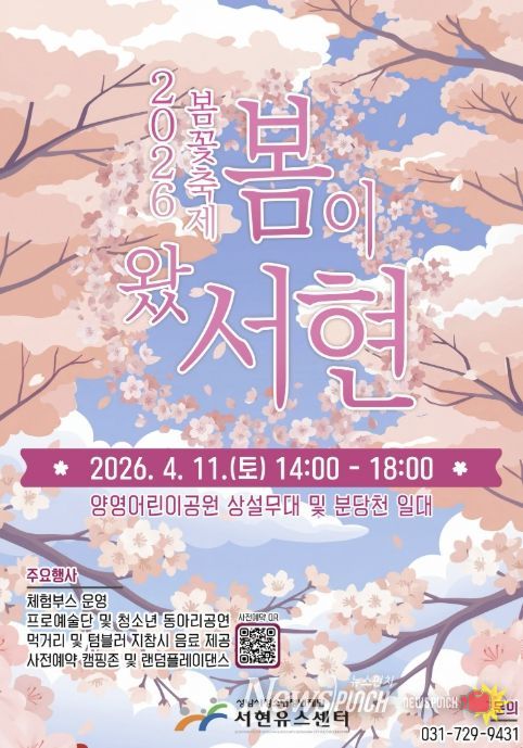 뉴스펀치 박상훈 기자 | 성남시청소년청년재단 서현유스센터는 4월 11일 14시부터 18시까지 양영어린이공원 일대에서 ‘제7회 청.마.닮’ 봄꽃축제 『봄이 왔서현!』을 개최한다.