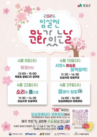 뉴스펀치 최영남 기자 | 임실군 이 문화체육관광부와 지역문화진흥원이 주관하고 전북특별자치도 문화관광재단이 공모한 ‘2026 구석구석 문화가 있는 날’ 사업에 최종 선정 되어, 4월 8일부터 본격적인 행사를 시작한다.