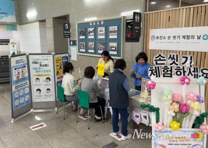 뉴스펀치 정홍균 기자 | 부평구보건소는 7일 보건소 방문 주민을 대상으로 ‘손 씻기 체험의 날’ 체험부스를 운영했다.