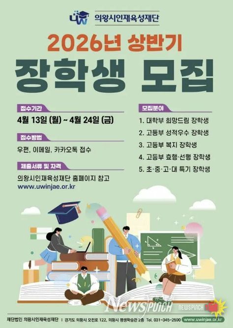 뉴스펀치 박상훈 기자 | 의왕시인재육성재단이 2026년 상반기 장학생을 모집한다.