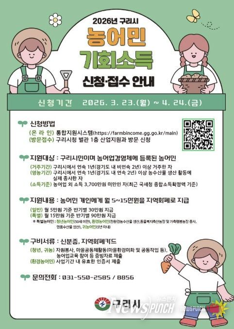 뉴스펀치 박상훈 기자 | 구리시는 ‘2026년 농어민 기회 소득 지원사업’ 신청을 오는 4월 24일까지 접수한다고 밝혔다.