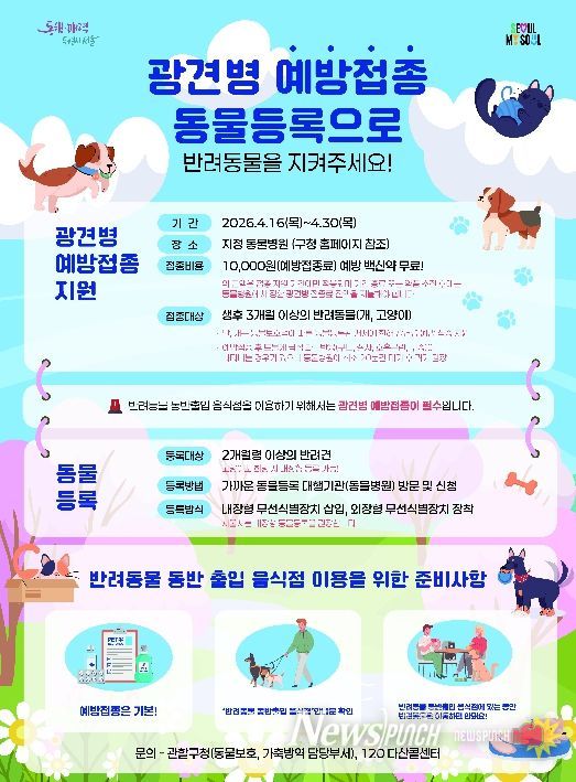 뉴스펀치 박상훈 기자 | 서울 용산구가 반려동물과 구민의 건강을 동시에 지키기 위해 광견병 예방접종 지원에 나선다.
