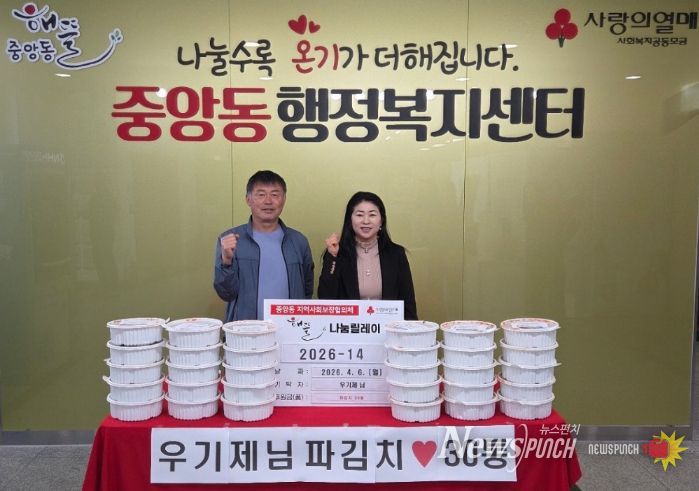 백경희 중앙동장은 “항상 이웃을 먼저 생각하며 따뜻한 나눔을 실천해 주시는 우기제 전 위원장께 깊이 감사드린다”며 “소중한 마음이 꼭 필요한 가구에 잘 전달될 수 있도록 행정적 지원을 아끼지 않겠다”고 밝혔다.