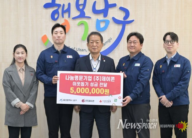 뉴스펀치 김윤걸 기자 | ㈜제이콘(대표이사 홍대성)은 7일 관내 저소득층 지원을 위한 성금 500만 원을 남구에 전달했다.