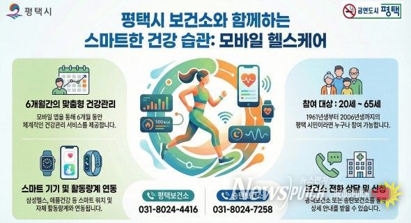 뉴스펀치 박상훈 기자 | 평택시가 시민들의 만성질환 예방과 건강한 생활 습관 형성을 돕기 위해 ‘2026년 보건소 모바일 헬스케어’ 사업을 시작하고 참여자를 선착순 모집하고 있다.