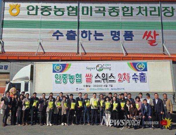 뉴스펀치 박상훈 기자 | 평택시는 7일 안중농협 임직원과 농협중앙회, NH농협무역 관계자들이 참석한 가운데 안중농협 미곡처리장(RPC)에서 지역 대표 브랜드 ‘슈퍼오닝 쌀’ 스위스 수출 기념식을 진행했다.