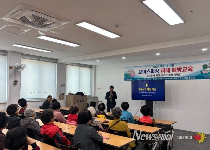 뉴스펀치 정홍균 기자 | 익산시는 7일 익산시북부노인종합복지관에서 고령층을 대상으로 '금융사기 예방 및 금융소비자 보호 교육'을 진행했다.