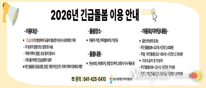 뉴스펀치 이현승 기자 | 아산시는 장애인 가족의 돌봄 부담을 경감하고 삶의 질을 향상하기 위해 ‘중증장애인 긴급돌봄서비스’를 추진한다.