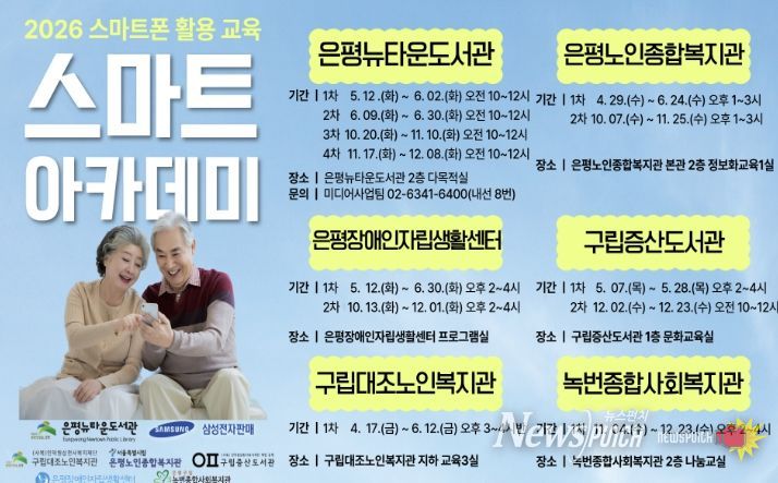 뉴스펀치 박상훈 기자 | 서울 은평구는 구립은평뉴타운도서관에서 지역 주민의 디지털 역량 강화를 위한 스마트폰 활용 교육 프로그램 ‘2026 스마트 아카데미’를 운영한다고 밝혔다.