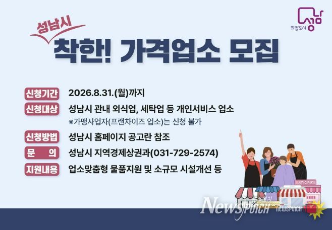 접수는 8월 31일까지 진행되며, 성남시청 홈페이지 공고문을 참고해 시청 지역경제상권과를 방문하거나 이메일 또는 우편으로 신청하면 된다.