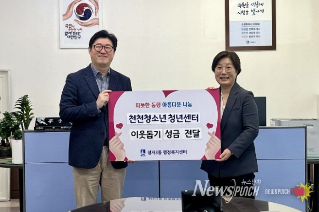 뉴스펀치 박상훈 기자 | 천천청소년청년센터는 지난 7일, 청소년·청년들이 직접 기획하고 운영한 펀딩 프로젝트를 통해 마련한 수익금 314,500원을 지역 내 어려운 이웃을 위해 써달라며 정자3동 행정복지센터에 기부했다.