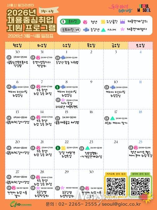 이와 함께 시는 취업을 희망하는 서울 거주 전 연령(청년·취약계층·중장년·시니어) 4,500명을 대상으로, 채용 연계를 핵심으로 한 맞춤형 취업지원 프로그램을 4월부터 운영한다.