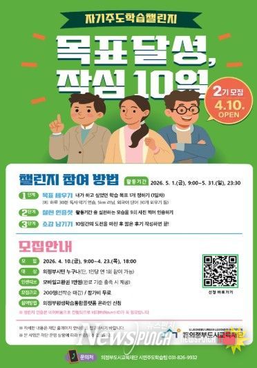 뉴스펀치 박상훈 기자 | 의정부도시교육재단은 시민의 일상 속 학습 실천을 응원하는 의정부시민대학 시민LAB 자기주도학습챌린지 ‘목표달성, 작심 10일’ 2기 참여자를 모집한다고 밝혔다.