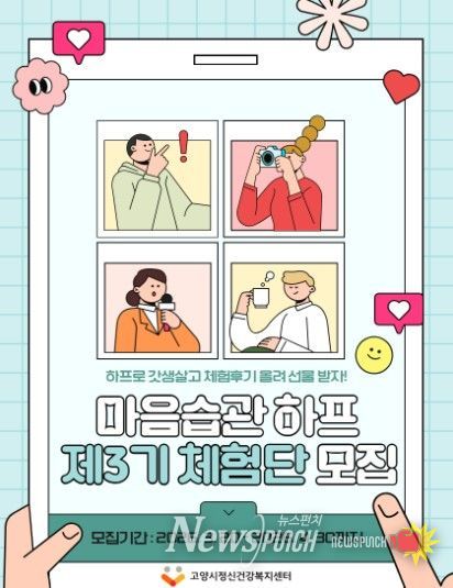 뉴스펀치 박상훈 기자 | 고양특례시 고양시정신건강복지센터는 오는 30일까지 제3기‘마음습관 하프’체험단을 모집한다.