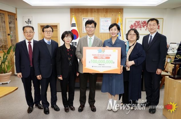 뉴스펀치 이현승 기자 | 충청북도교육청은 8일 오전 11시, 본청 집무실에서 (재)충북교육성장지원재단(이사장 최지현)이 기탁한 독서교육 및 학교도서관 활성화 장학금 1억 원에 대한 전달식을 개최했다고 밝혔다.