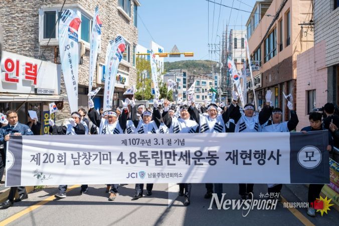 뉴스펀치 김윤걸 기자 | 울산 남울주청년회의소가 8일 남창 3·1운동 기념비와 온양읍 행정복지센터에서 제107주년 남창 4·8 만세운동 재현행사를 개최했다.