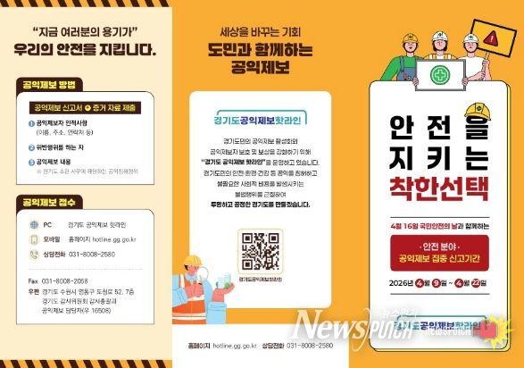 안상섭 경기도 감사위원회 위원장은 “안전은 모두의 관심과 참여로 함께 만들어가는 것”이라며 “집중 신고 기간 운영을 통해 건설 현장 관계자들이 공익제보 제도를 보다 잘 이해하고, 공익침해행위를 적극적으로 신고해 경기도 내 안전한 건설 문화 정착과 사고 예방에 기여하길 기대한다”고 말했다.