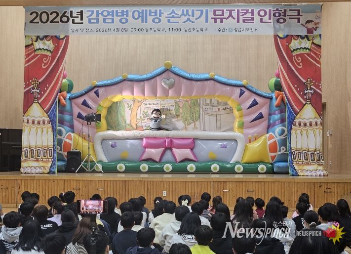 뉴스펀치 최영남 기자 | 정읍시가 감염병에 취약한 초등학교 저학년 어린이들의 건강한 생활 습관을 길러주기 위해 이달 중 관내 초등학교 4곳을 찾아가는 ‘올바른 손 씻기’ 인형극을 개최한다고 9일 밝혔다.