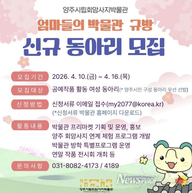 뉴스펀치 박상훈 기자 | 양주시립회암사지박물관은 오는 10일부터 공예 및 아트상품 분야에 관심 있는 여성들을 대상으로 ‘엄마들의 박물관 규방’ 동아리를 모집한다.