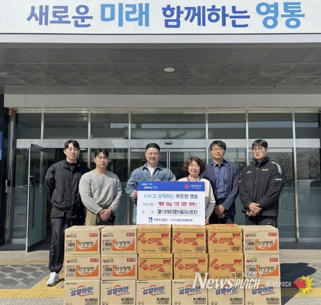 뉴스펀치 박상훈 기자 | 수원시 영통구는 지난 8일 헬스보이짐 팀인서울지사 리더단이 관내 저소득 가정 및 취약계층을 위해 백미와 라면 등 100만 원 상당의 생필품을 후원했다고 밝혔다.