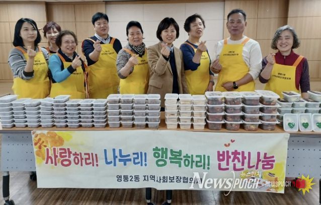뉴스펀치 박상훈 기자 | 수원시 영통구 영통2동은 지난 8일 영통2동 지역사회보장협의체가 지역 내 취약계층을 위한 ‘사랑하리!나누리!행복하리!’ 반찬나눔 행사를 진행했다고 밝혔다.